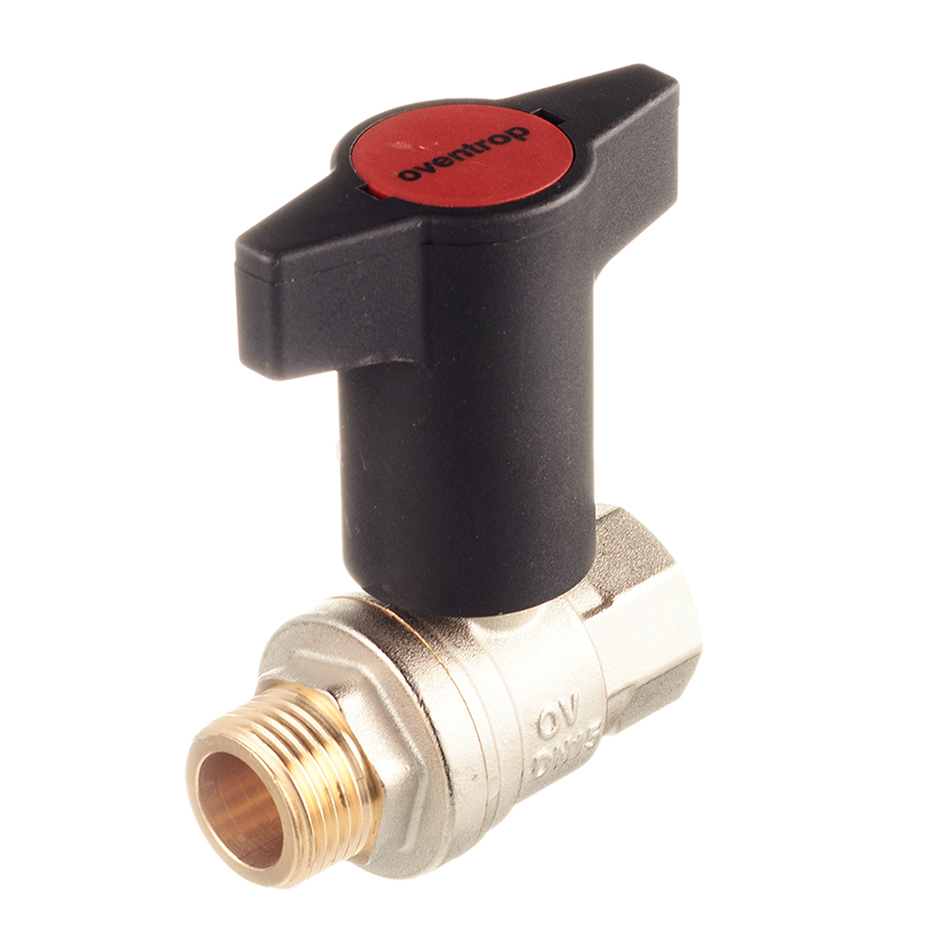 Кран шаровой латунный Oventrop Optibal (1077304) 1/2 ВР(г) х 1/2 НР(ш) полнопроходной бабочка удлиненная прямой