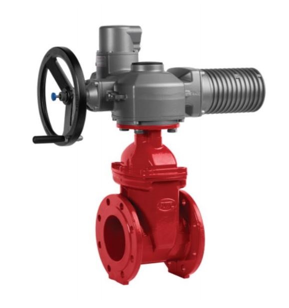 Задвижка с обрезиненным клином KR15 DN200, PN16 ГРАНАР , ф/ф, с электроприводом SA14.2, 380 В ( красная)